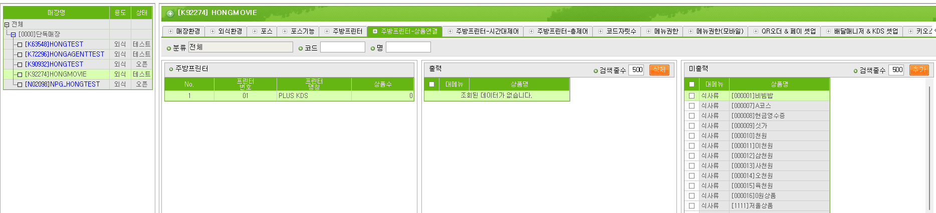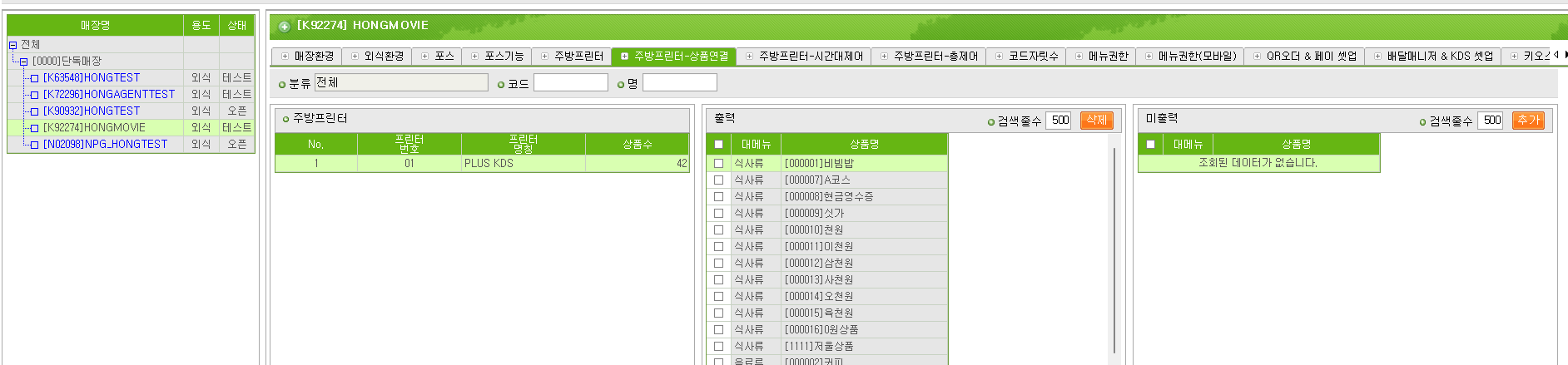 ### 2.5. 프린터 등록 후 주방프린터 상품 연결 진행