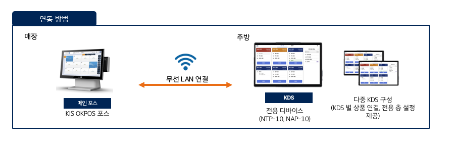 메인 KIS OKPOS에 WIFI를 통해 KDS를 연동할 수 있습니다. (단, 같은 인터넷 망에 연결)